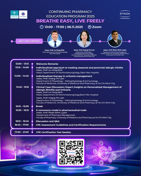 🎓 Supported by the Central Health Education and Communication Center – Ministry of Health (T5G-MOH) and certified by the Ho Chi Minh City Pharmaceutical Association (HCPA), STADA Academy continues to empower Vietnam’s pharmacist community through science, learning, and meaningful exchange – featuring experts from national tertiary care hospitals and leading universities:
