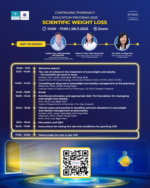 Discover evidence-based strategies for weight management and pharmacy counseling, led by experts from Cho Ray Hospital and Gia Dinh People’s Hospital – empowering pharmacists to promote healthier, safer, and more sustainable approaches to obesity treatment and long-term lifestyle change. 🥗💪