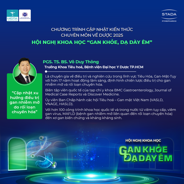 Mọi hành trình học tập hiệu quả đều bắt đầu từ những người thầy giỏi – và Tập 6 Chương trình Cập nhật Kiến thức Chuyên môn về Dược 2025 của STADA Pymepharo quy tụ đội ngũ chuyên gia đầu ngành trong lĩnh vực Tiêu hóa – Gan mật – Dược lâm sàng tại Việt Nam.