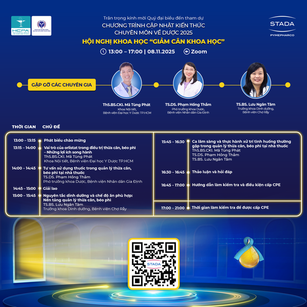 Được Bộ Y tế – Trung tâm Truyền thông, Giáo dục Sức khỏe Trung ương (T5G-MOH) bảo trợ về mặt nội dung, chuyên môn – và được cấp chứng chỉ CPE bởi Hội Dược học TP. Hồ Chí Minh (HCPA), chương trình kế thừa và phát huy mục tiêu của STADA Pymepharco trong việc đồng hành cùng cộng đồng dược sĩ tại Việt Nam thông qua học tập, với sự tham gia của các chuyên gia đến từ các bệnh viện và trường đại học hàng đầu trên cả nước.