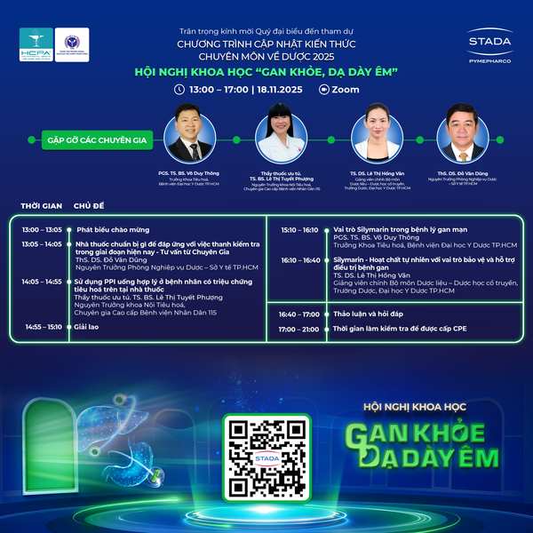 🎓 Được tổ chức với sự hỗ trợ của Trung tâm Truyền thông – Giáo dục Sức khỏe Trung ương (T5G – Bộ Y tế) và cấp chứng chỉ CPE bởi Hội Dược học TP. HCM (HCPA), STADA Academy tiếp tục đồng hành cùng đội ngũ dược sĩ trên toàn quốc thông qua các chương trình đào tạo thực tiễn và khoa học.