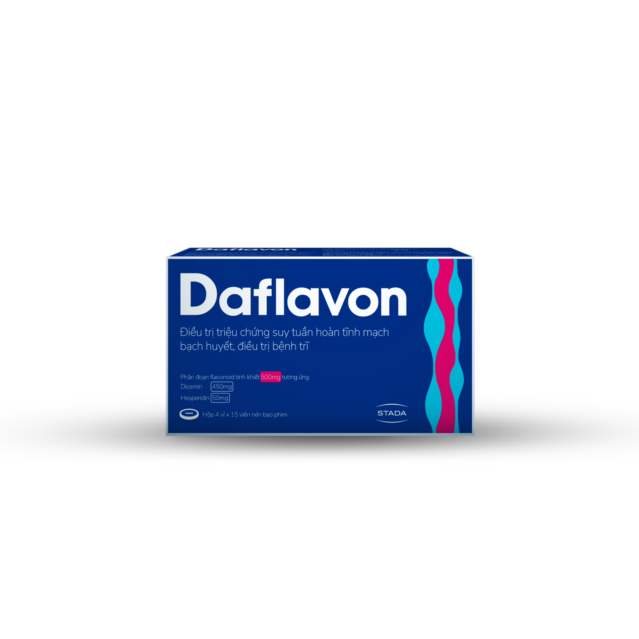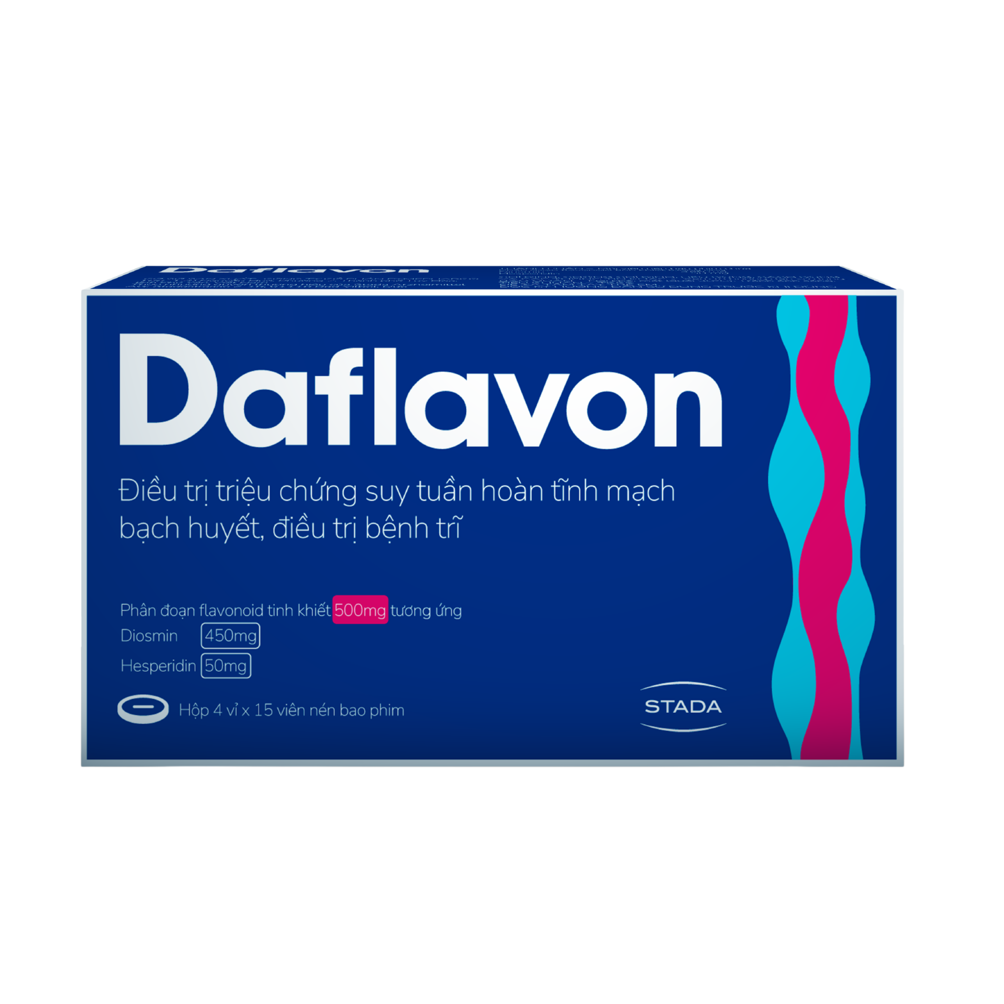 Mỗi viên nén bao phim chứa phân đoạn flavonoid tinh khiết 500 mg tương ứng: Diosmin 450 mg, Hesperidin 50 mg. Tá dược: Tinh bột ngô, microcrystallin cellulose, povidon, natri starch glycolat, colloidal silicon dioxid, natri stearyl fumarat, opadry orange, opadry clear.